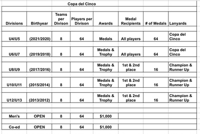 🏆 $1,000 PREMIO EN EFECTIVO para los campeones del torneo Masculino y Mixto solamente (¡con un mínimo de 8 equipos!)